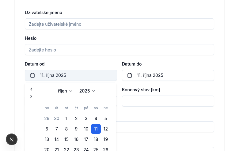 - Implemented shadcn/ui date picker with Czech localization